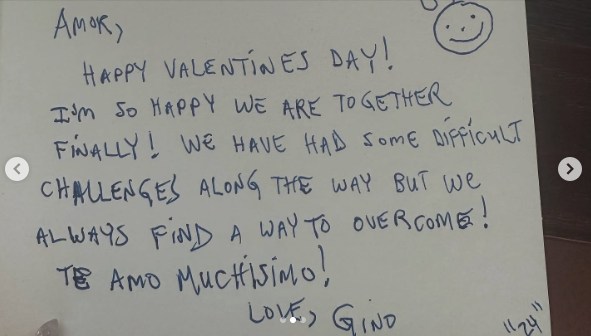 Jasmine also shows a card that Gino had written for her on Valentine’s Day. “We have had some difficult challenges along the way but we always find a way to overcome!” Despite stating that he was “happy to be together finally,” Gino still allegedly requested the separated rooms. In a comment, Jasmine wrote on her post, “I’m looking forward to have a better Valentine’s Day this year…Some life lessons have to be learned the hard way…”
