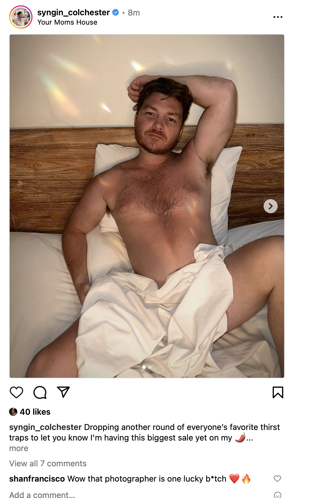 In the very intimate photos that Syngin shared, he captioned them, “Dropping another round of everyone’s favorite thirst traps to let you know I’m having the biggest sale yet on my site.” There were a lot of comments about his photos and not all of them were kind. In fact, some were downright rude.