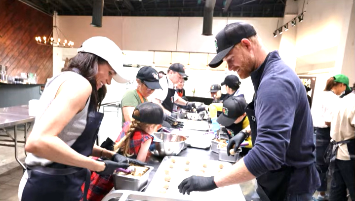 “As the season of giving begins, Prince Harry and Meghan, Duke and Duchess of Sussex, alongside the Archewell team, joined Our Big Kitchen Los Angeles, to prepare and package meals for community members experiencing food insecurity.”