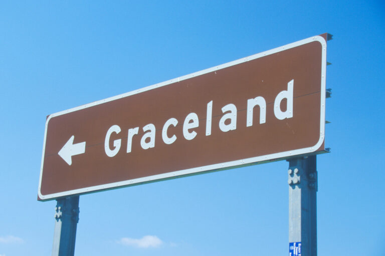 Directional sign to Graceland, home of Elvis Presley, Memphis, TN