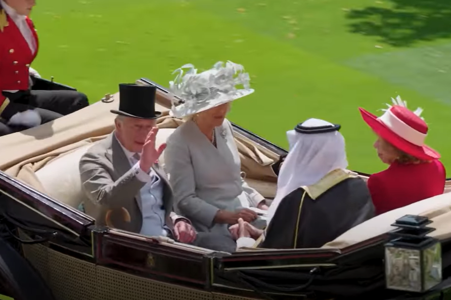 King Charles and Camilla in the first carriage at the Royal Ascot