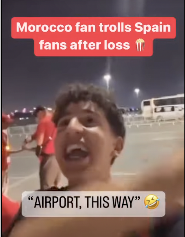 You are at:Home > Celebrities > Morocco Fan Brutally Trolls Spain Following Their Qatar World Cup Exit-‘Hey My Friend, The Airport Is This Way’