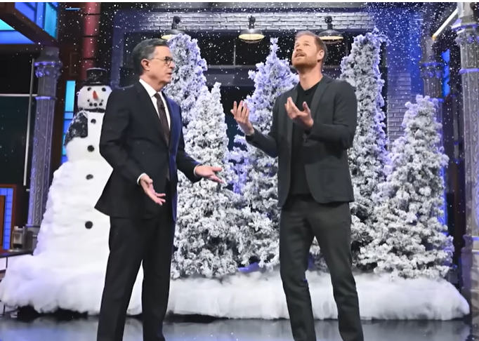 Fake snow fell onto the stage, and Harry made a gag about being a “handsome prince.” And Colbert needed to “believe.” The late-night host told Harry he had “got the role” of “official Late Show prince of Christmas.”