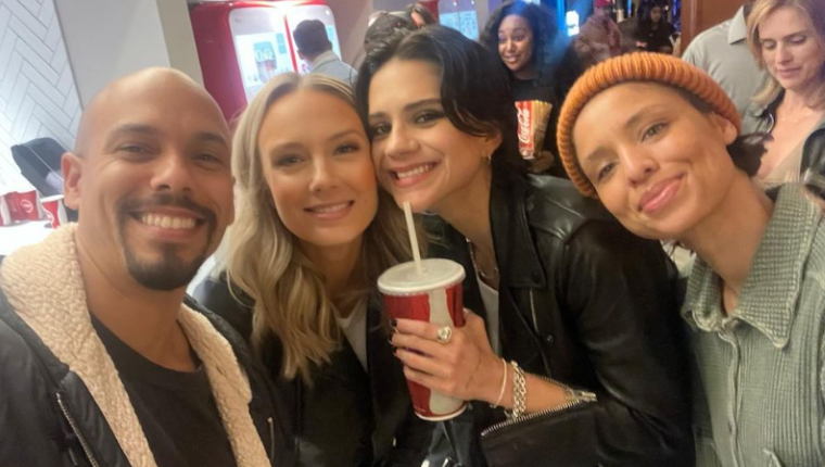 Melissa Ordway (Abby Newman) shared a photo of herself with Calle, Brytni Sarpy (Elena Dawson) and Bryton James (Devon Hamilton) all together at the theater ready to go see the new film. In the caption Ordway added that she was a star now and how happy she was for her.
