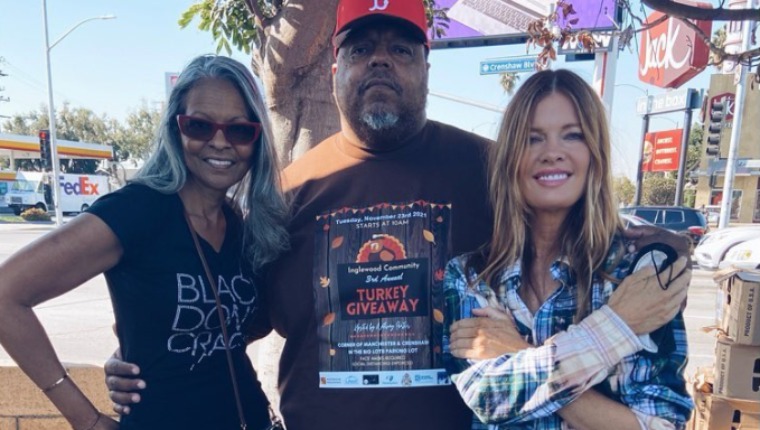 “Today I had the great good fortune to help out with a turkey give away through my friend’s (Big John Harriel) charity foundation #bigjohnkares John is from the South Central community in LA and gives back to the community, non stop… He cares SO much about folks. He was helped by #theswinertonfoundation today as well. We gave away over 400 turkeys to folks today! Check out my stories! We had so much fun and I made some new friends. You are going to see more great things Big John is doing on my feed in the future! Thanksgiving is about just that… giving. I was so happy to be a part of this today! #atimeforchange #manchesterandcrenshaw ❤️ 🍁🦃 my shirt is a @sabiestodyefor exclusive“