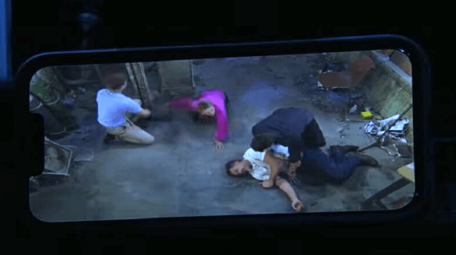 NIck, Sharon, Adam, and Noah held in garage by Matt